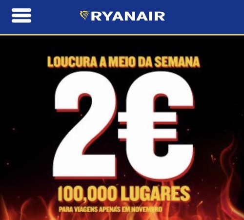 A Ryanair está com bilhetes a 2€ até à meia noite de hoje (quarta-feira) para várias cidades da europa! Apenas se viajarem à terça ou quarta feira e em novembro.